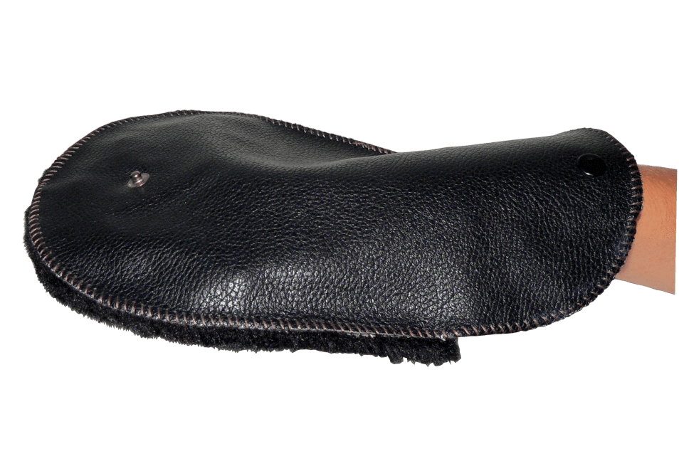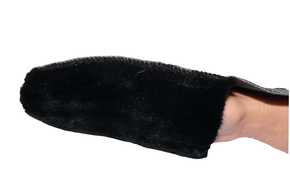 This stunning roll-up polishing glove is the ideal accessory to have in your shoe shining kit. The glove fits perfectly on your hand to give you the ease to polish your leather to a flawless shine. Designed to use the warmth of your hand to aid in polishing, this glove will support in the spreading of the polish for an enhanced shine. With its soft synthetic furred fabric, this product will then roll up and can be fastened closed for easy storage.