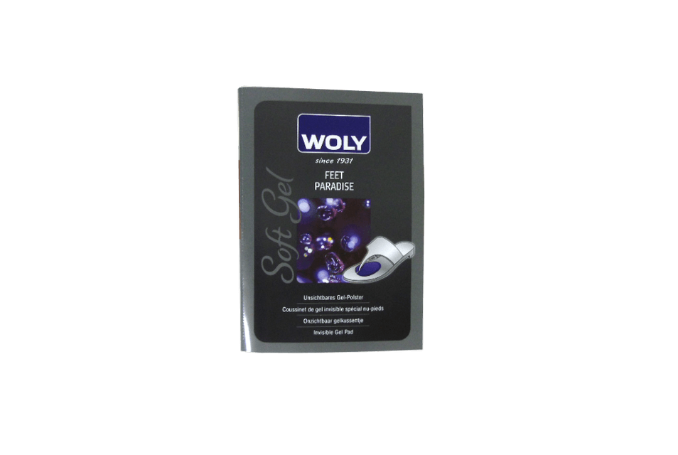 Avoid the burning and pinching sensation when wearing casual sandals like flip flops with the aptly named Woly Feet Paradise. An added layer of shock absorption and protection from the uncomfortable rubbing that can be caused by the strap between the toes is afforded by the pad which is applied with a clear adhesive that can be renewed with water. Enjoy warm weather strolls and foot safety at the gym with this clever gel foot pads. Browse the array of shoe and sandal comfort items from Woly online at Valentino Garemi. Woly also offers the best leather care and polishing products, proving to be a convenient one stop shop within our footwear and foot care specialty web site, available 24/7 from the comfort of your home.