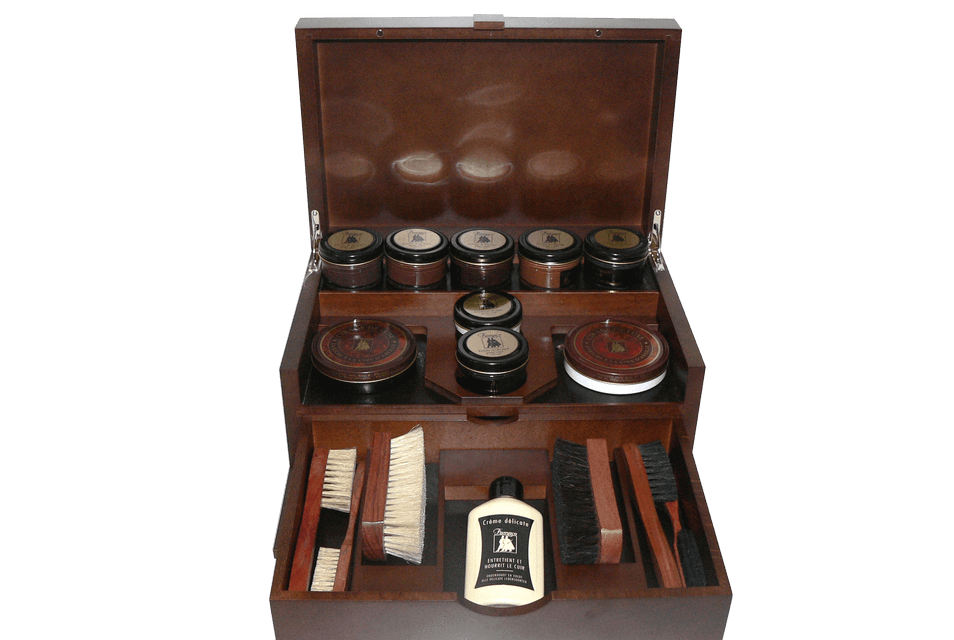 A fine French shoe shine kit certainly fit for royalty, a perfect gift for men, fathers, or brothers, this remarkable set won't disappoint.