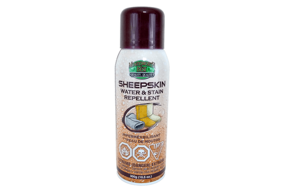 Moneysworth & Best's Sheepskin Water & Stain Repellent is necessary for those who enjoy the look and feel of sheepskin footwear. Sheepskin risks harm from the extremes of weather that occur while it is worn, including water damage from rain and snow and ground in dirt and staining from sand, salt and mud. Footwear treated with this aerosol based product will shed moisture and dirt, extending the useful life of these warm and comfortable shoes and boots.