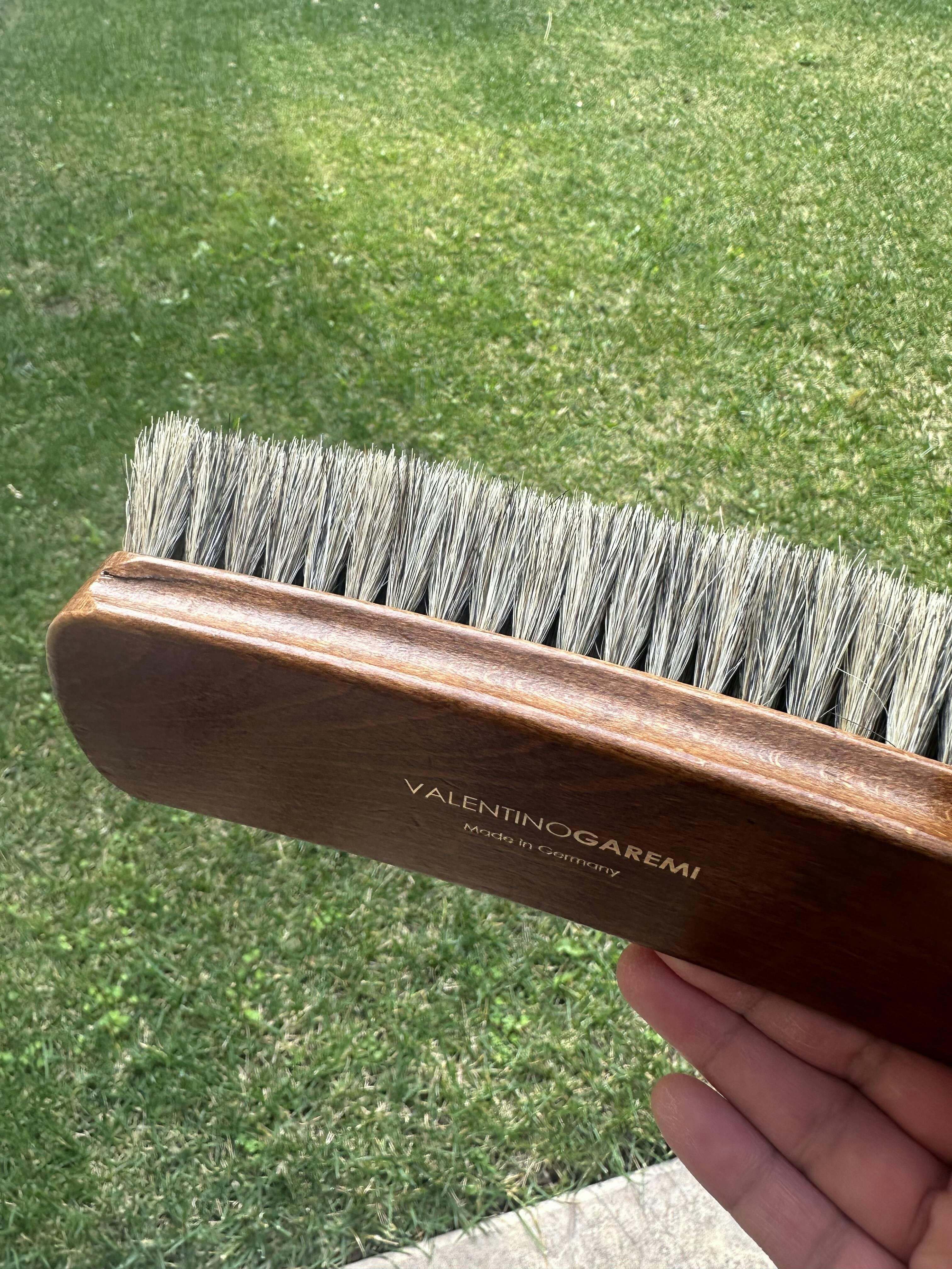 Owning the Shining & Polishing Brush with such impressive quality and large size will be an astonishing advantage for anyone with desire for high end results on shoe care. Designed and specially made for Valentino Garemi in Germany, the shine brush contains natural components as real horsehair for bristles with semi-curved hardwood handle and impressive size that will thrill you with its performance. ( size: L 8”, W 2.5”, H 2.5”). Valentino Garemi is dedicated and committed to provide only high-end quality shoe care products, that are hard to find today on the world market flooded with generic low end items. A video presentation of the product can be found on Youtube for illustrative purposes only.
