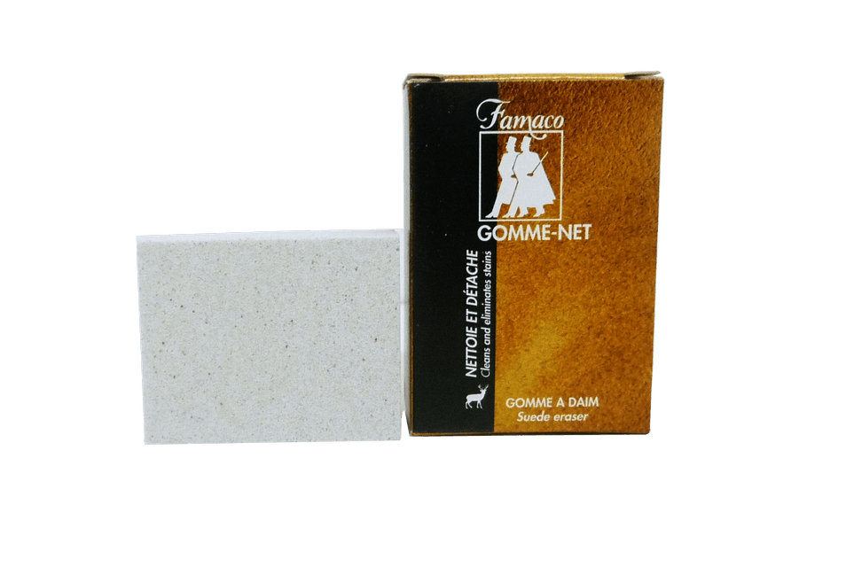 If you love the look of napped leathers like suede and nubuck you will welcome the convenience and effectiveness of the Suede Shoe Stain Eraser. The textures of these luxury leathers can be a real magnet for soil and grease, destroying the beauty of your footwear, clothing or bag. Working without any harsh cleansers, the eraser absorbs the dirt, stains and even unwanted oil and grease that can mar your napped leather possessions. If you want options galore for solving your smooth leather, textile and napped leather care challenges, Famaco is the company to rely upon. Offering cleansers, conditioners, polishes, protectants and specialized tools to assist with luxury materials, this French icon will have just the solution for your problem, products now offered in Canada by Valentino Garemi.